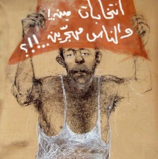 تتناثر الإعلانات الطرقية عن انتخابات مجلس الشعب بطريقة تعتمد الإبهار البصري. وتتشابك وتتنافس العبارات والشعارات بطريقة استعراضية أول ما يربطها العقل في لا وعيه بالسوق و اعلانات الحفلات بالمطاعم، حيث يتبارى الباعة بالدعاية ومديح بضاعتهم التي ربما لا تساوي حجم ما ينفق عليها من دعايات لترويجها.