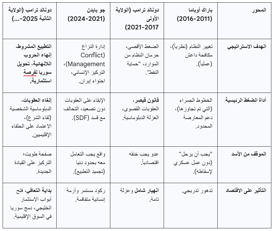 5. مقارنة تحليلية: تطور العقيدة الرئاسية الأمريكية تجاه سوريا