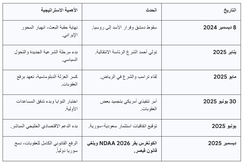 جدول: التسلسل الزمني للأحداث الرئيسية (2024-2025)